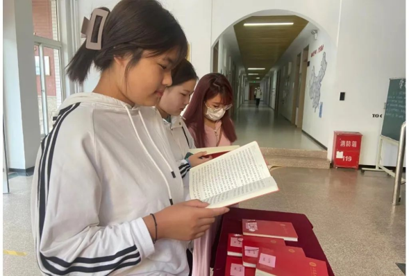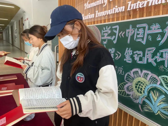 課余時(shí)間,同學(xué)們認(rèn)真翻閱《黨章》筆記,紛紛稱贊黨員同志們學(xué)習(xí)用心、書寫認(rèn)真,也進(jìn)一步堅(jiān)定了同學(xué)們?nèi)朦h的志向和決心。