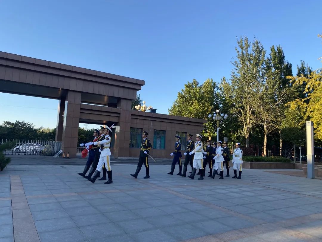上午7時整伴隨著激昂嘹亮的國歌響起,鮮艷的五星紅旗冉冉升起,參加儀式的師生們莊嚴肅立,面向國旗行注目禮,向偉大祖國表達深切熱愛和美好祝福。
