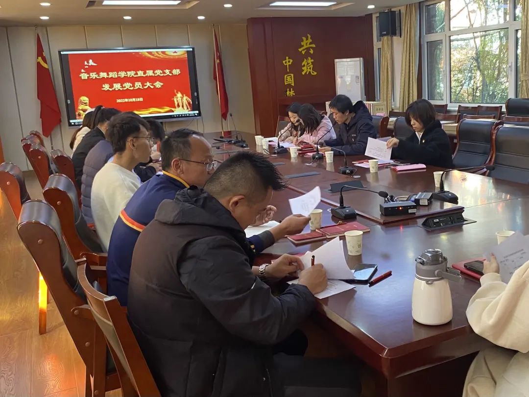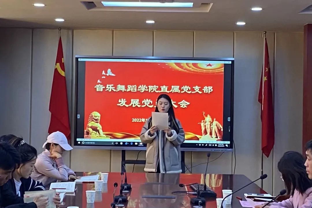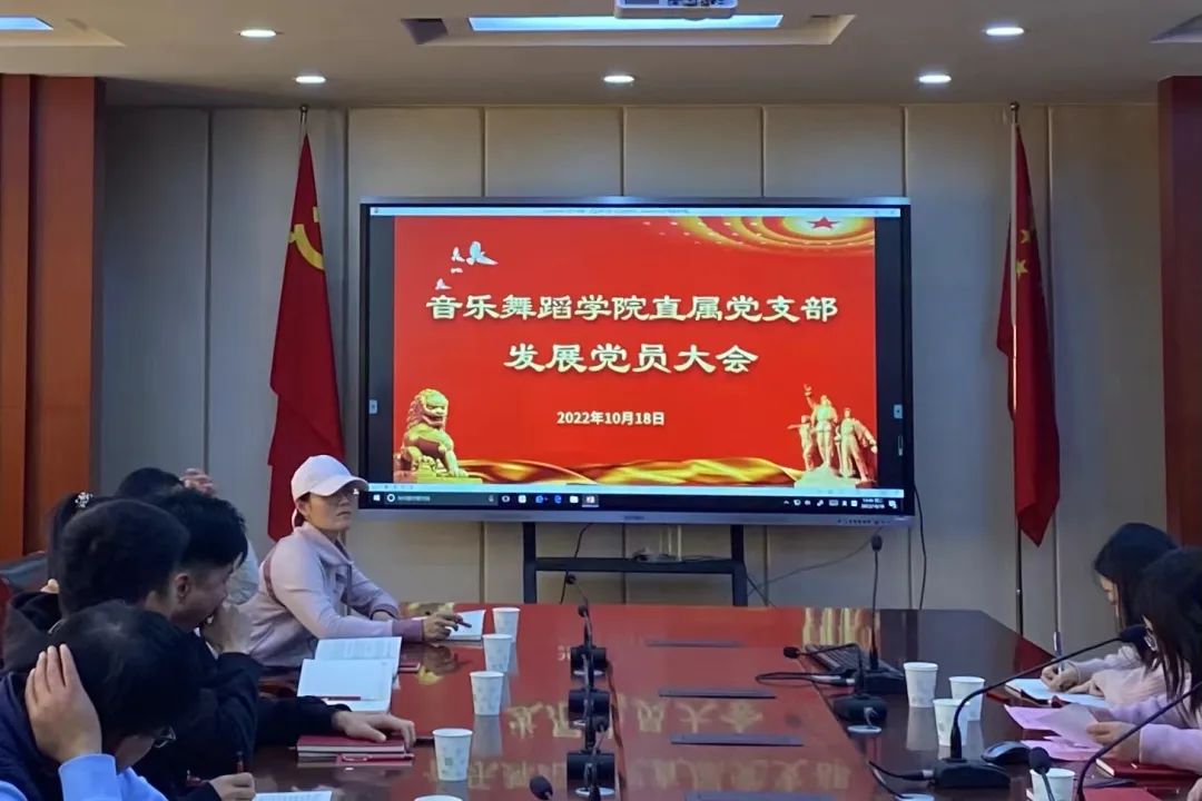 2022年10月18日下午,音樂舞蹈學院直屬黨支部在學校黨員活動室召開發(fā)展黨員大會,大會的主要議題是討論本支部4名同志的黨員發(fā)展問題。黨支部全體黨員、發(fā)展對象參加了會議,會議由黨支部書記祝景朋主持。
