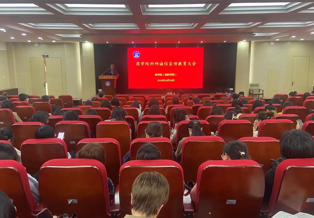 2022年10月18日下午,商學(xué)院(國際學(xué)院)在學(xué)術(shù)報告廳舉行了科研誠信宣傳教育大會。會議由商學(xué)院黨總支書記、院長趙坤主持,教學(xué)副院長殷永生、黨總支副書記徐宜慧以及商學(xué)院全體教職工參加了此次科研誠信宣傳教育培訓(xùn)大會。