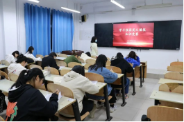 我院結(jié)合外語專業(yè)特點(diǎn),持續(xù)開展“頭條英文播報(bào)”活動,每日在教學(xué)樓下黑板更新“學(xué)習(xí)強(qiáng)國”平臺中的“頭條英文播報(bào)”中的詞句內(nèi)容,每位同學(xué)都會記錄并利用課余時(shí)間誦讀,形成了良好的學(xué)習(xí)氛圍。為檢驗(yàn)學(xué)習(xí)情況、以賽促學(xué),我院開展學(xué)習(xí)強(qiáng)國知識競賽,各班級推選優(yōu)秀選手參加全院競賽。
