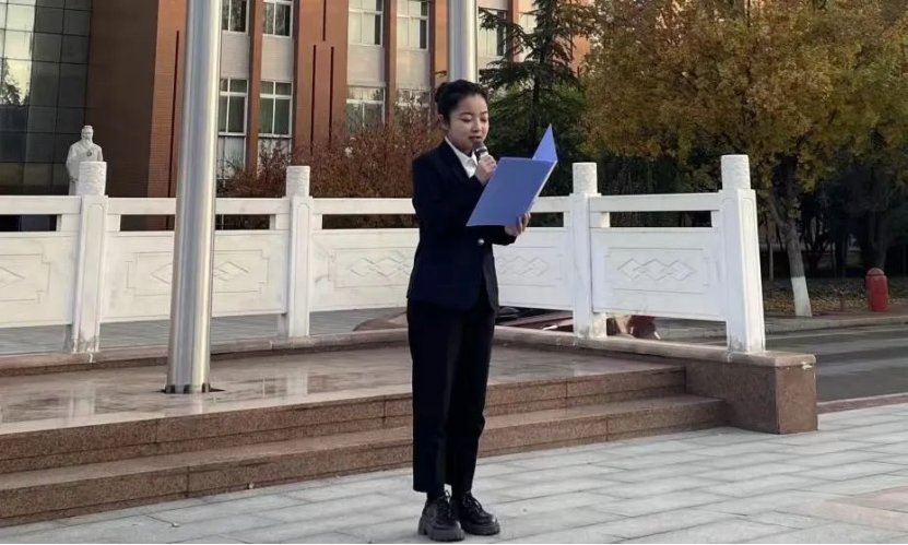 新一屆學(xué)生會執(zhí)行主席薛嬌在國旗下作了題為“爭做時代新青年”的演講,她講到作為新時代大學(xué)生,必須堅定理想信念、不負韶華,將自己人生規(guī)劃與國家發(fā)展需要緊密聯(lián)系在一起,做德智體美勞全面發(fā)展的社會主義建設(shè)者和接班人。