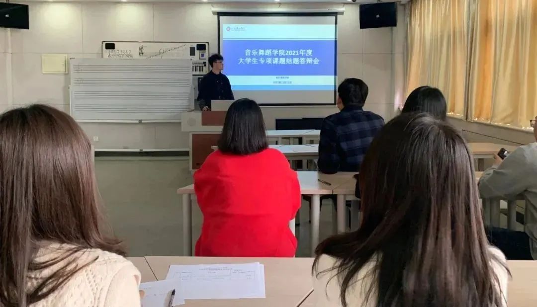 2022年11月11日中午,音樂舞蹈學(xué)院2021年度大學(xué)生專項課題結(jié)題答辯會在辦公樓5005室舉行,音樂舞蹈學(xué)院院長、院學(xué)術(shù)委員會主任吳可畏、委員李泓廷、李仙、宋琦、阮坤、孫孟紅、陳夢姣、單銘共七名教師擔(dān)任此次答辯會評委。