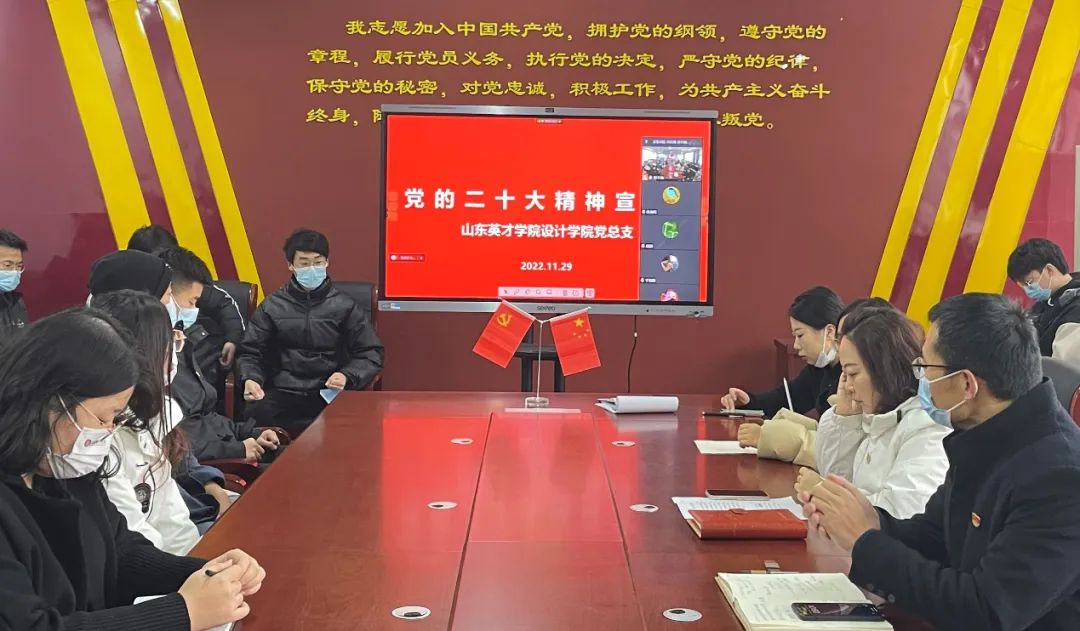 11月29日上午,設計學院黨總支在北校區(qū)設計樓黨員活動室開展黨的二十大精神宣講學習報告會,宣講人為設計學院黨總支書記、院長周長積。宣講報告會采取線上、線下的形式進行,黨總支副書記馮俊建、教師黨支部書記郝瑩、設計學院全體教職工及學生黨員聆聽宣講。