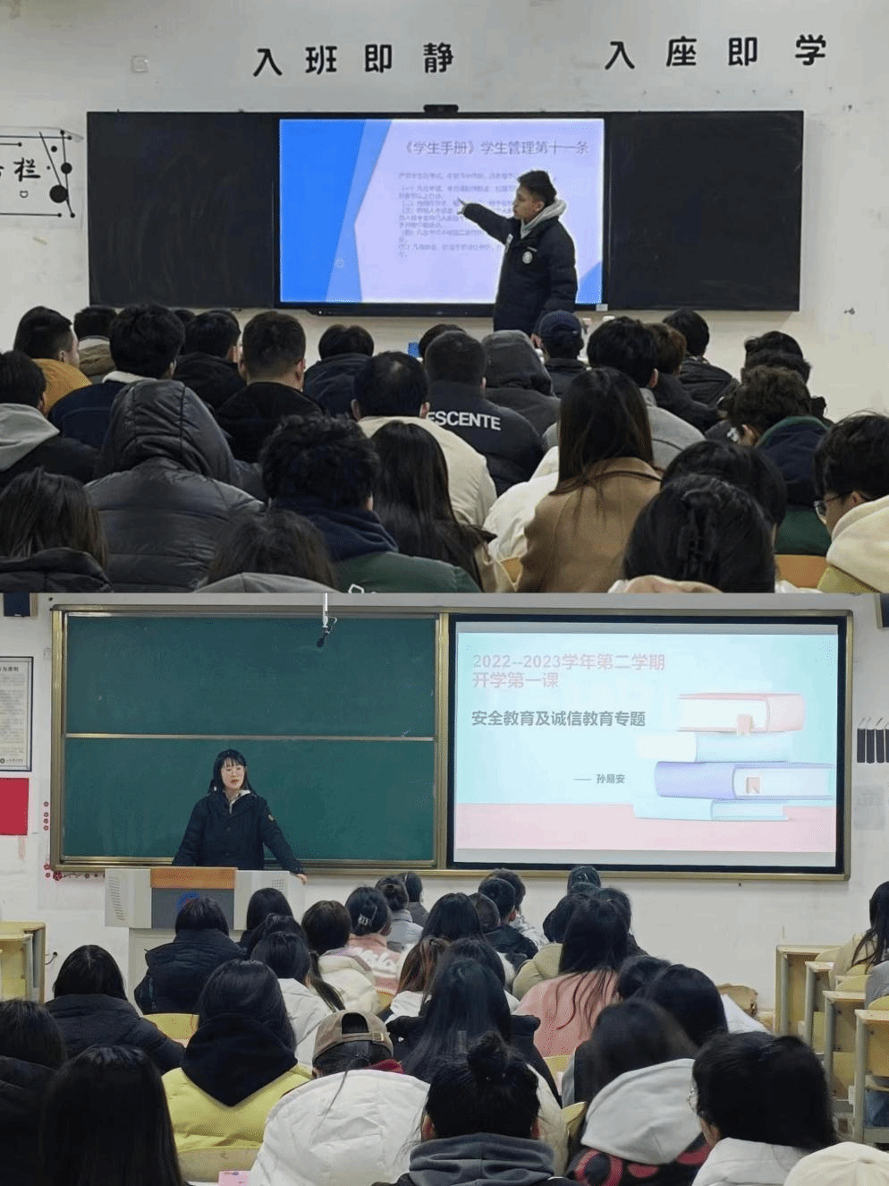 新學(xué)期,新起點(diǎn)。輔導(dǎo)員們于2月12日召開新學(xué)期主題班會,以安全教育為重點(diǎn),并就期末考試對學(xué)生做了嚴(yán)格要求,嚴(yán)肅考風(fēng)考紀(jì)。會后,輔導(dǎo)員們認(rèn)真總結(jié)班會經(jīng)驗(yàn)并撰寫心得體會,與學(xué)生一同成長。