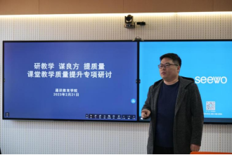二月里春風(fēng)送暖,正值學(xué)習(xí)的大好時(shí)節(jié)。2月21日上午,為進(jìn)一步提升教師課堂教學(xué)質(zhì)量、深化課程改革、助力高質(zhì)量發(fā)展,通識(shí)教育學(xué)院邀請(qǐng)校級(jí)教學(xué)督導(dǎo)韓振來教授進(jìn)行了一場(chǎng)別開生面的研討會(huì)。研討會(huì)圍繞著“研教學(xué)、謀良方、提質(zhì)量”展開,孫文紅副校長(zhǎng)、通識(shí)教育學(xué)院院長(zhǎng)龍新良以及學(xué)院全體教師參加,研討活動(dòng)由數(shù)學(xué)教研室主任張彪主持。