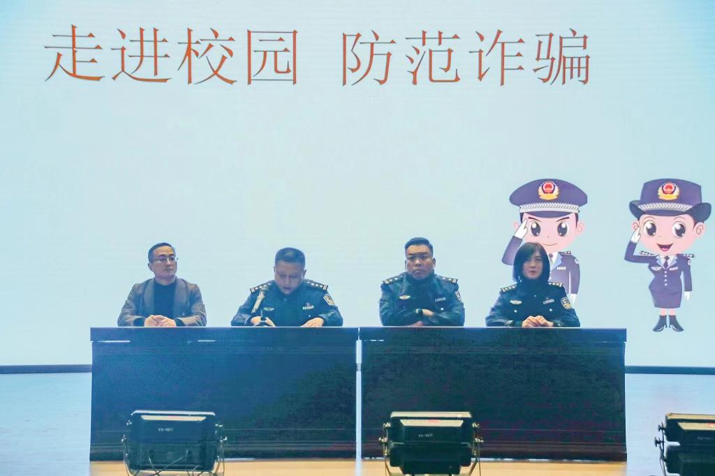為貫徹全省學校安全工作專題會議要求,切實做好師生安全教育,加大防范電信網(wǎng)絡詐騙工作宣傳教育,2月28日下午,山東英才學院在北校區(qū)大學生活動中心舉辦防范網(wǎng)絡詐騙主題教育報告會,特邀濟南市起步區(qū)公安分局刑警大隊李建華隊長、崔寨派出所李玉堂所長參加,趙傳香警官主講,由山東英才學院學生處副處長杜志玉主持。北校區(qū)安全管理負責人韓長江、商學院和設計學院全體輔導員以及1000余名在校生參加了本次報告會。