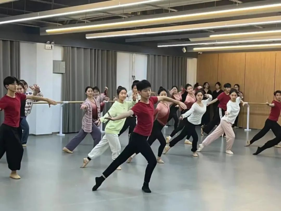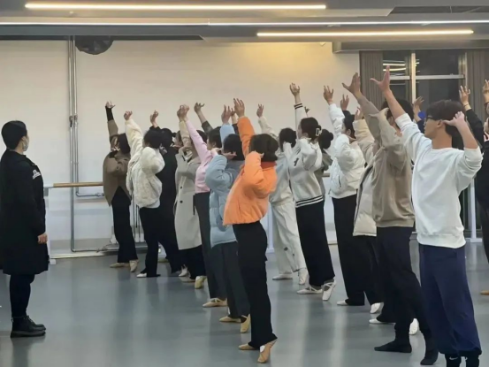 舞蹈表演專業(yè)學(xué)生通過熱身、軟度訓(xùn)練、趴橫叉、耗腿、把上踢腿、把下踢腿、平板支撐等專業(yè)技能訓(xùn)練提升學(xué)生的耐力、柔軟度、肌肉張力,使學(xué)生在跳舞時身體更加的輕盈,動作更加的流暢干凈,更有質(zhì)感和美感。