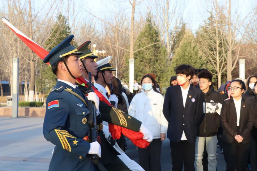 升旗儀式正式開始,迎著朝陽,山東英才學(xué)院兄弟連國旗中隊著裝整齊,邁著矯健的步伐,以飽滿的熱情,莊嚴(yán)地護(hù)衛(wèi)五星紅旗入場。雄壯有力的國歌響徹整個校園,鮮艷的五星紅旗冉冉升起,激發(fā)了全體師生不斷向上的斗志,點燃了廣大學(xué)子內(nèi)心強烈的愛國熱情。