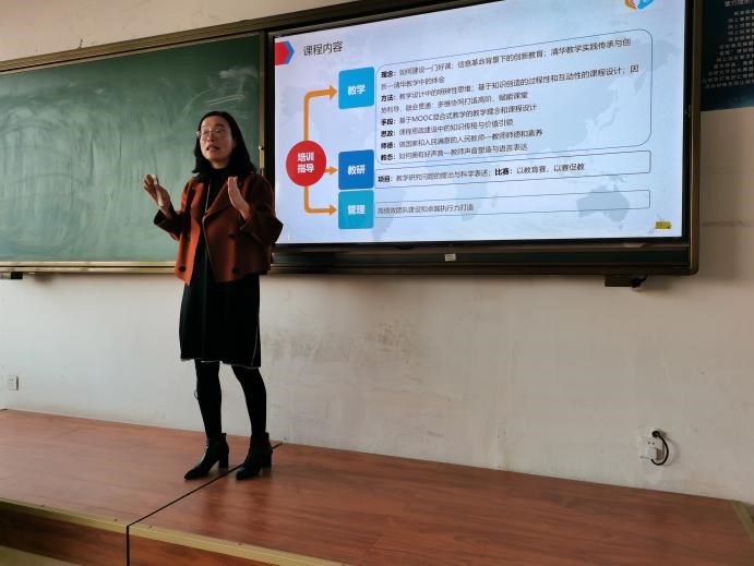 王輝老師從教學(xué)理念、教學(xué)方法、教學(xué)研究等方面分享了學(xué)習(xí)成果,重點(diǎn)介紹了如何從教學(xué)內(nèi)容、教學(xué)設(shè)計(jì)出發(fā)建設(shè)一門課程。邱寶瑩老師分享了完全翻轉(zhuǎn)教學(xué)MOT三要素、課程設(shè)計(jì)的“三位一體”教學(xué)理念,并介紹如何將ORID焦點(diǎn)討論法引入主題研討類教學(xué)中使用。