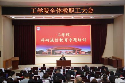 為持續(xù)強(qiáng)化我院教師的科研誠(chéng)信意識(shí),培養(yǎng)學(xué)術(shù)規(guī)范理念,規(guī)范論文發(fā)表和科研成果管理,3月10日工學(xué)院組織召開(kāi)科研誠(chéng)信政策宣講會(huì),全體教職工參加。田恒義院長(zhǎng)為全體參會(huì)人員進(jìn)行了科研誠(chéng)信教育宣講。