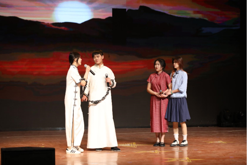 黃河翻滾,青春舞動(dòng),開場舞《黃河》,同學(xué)們神情堅(jiān)定,凝聚起最強(qiáng)勁的力量,以舞蹈動(dòng)作為“筆”,書寫黃河精神,講述著這條母親河的故事,講述著黨的故事。音樂劇《繡紅旗》、情景劇《刑場上的婚禮》,通過演繹江姐、胡惟庸等革命先輩們無懼生死為共產(chǎn)主義拋頭顱、灑熱血的偉大精神,詮釋了中國共產(chǎn)黨人的初心使命,英雄悲壯而豪邁之美充盈著整個(gè)課堂。歌曲《天耀中華》《不忘初心》歌頌新時(shí)代,中國共產(chǎn)黨已經(jīng)走過了一百多年的光輝歷程,恰是風(fēng)華正茂,回顧中國共產(chǎn)黨一百多年的風(fēng)雨歷程,向黨致以青春的禮贊,歌頌新時(shí)代之歌。