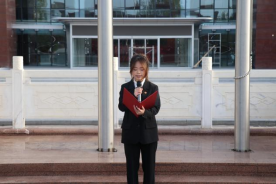 迎著旭日的朝陽(yáng),英姿颯爽的國(guó)旗護(hù)衛(wèi)隊(duì)整齊劃一,以飽滿(mǎn)的熱情護(hù)衛(wèi)國(guó)旗進(jìn)場(chǎng)。在慷慨激昂的《義勇軍進(jìn)行曲》中,五星紅旗冉冉升起,全體師生莊嚴(yán)肅立,行注目禮。