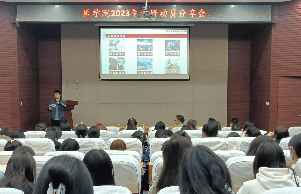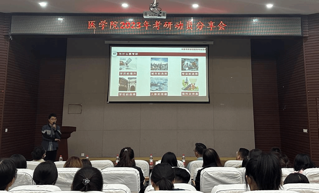 為激發(fā)學生考研熱情,明確考研目標,進一步幫助學生了解考研動態(tài),解答學生關于考研的疑惑,做好考研規(guī)劃。醫(yī)學院于4月11日在學術報告廳組織召開考研動員分享會。本次會議由張老師為大家做專題分享,2020級全體本科同學參加。
