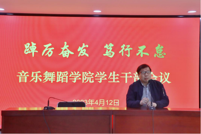為全面深入學(xué)習(xí)習(xí)近平新時(shí)代中國(guó)特色社會(huì)主義思想,進(jìn)一步貫徹落實(shí)全國(guó)高校思想政治工作會(huì)議精神和全面實(shí)施教育部《高校思想政治工作質(zhì)量提升工程實(shí)施綱要》,深入落實(shí)山東英才學(xué)院2023黨政工作內(nèi)容,大力提升我院育人工作質(zhì)量。音樂舞蹈學(xué)院特此召開“踔厲奮發(fā),篤行不息”學(xué)生干部會(huì)議,音樂舞蹈學(xué)院院長(zhǎng)吳可畏、直屬黨支部書記祝景朋以及全體學(xué)生干部參加此次會(huì)議。