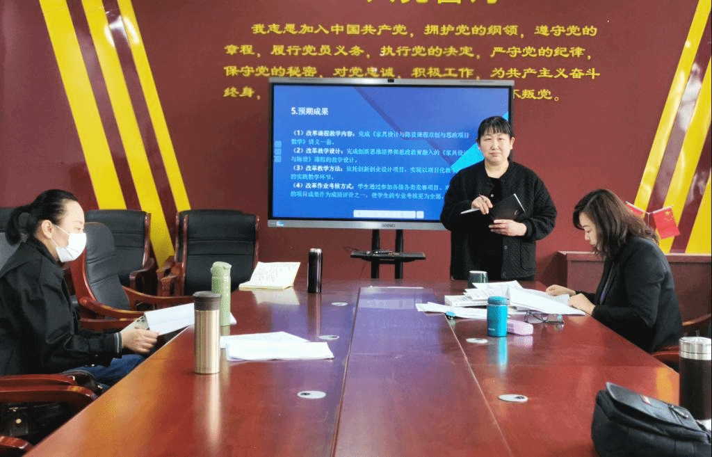 各課題負(fù)責(zé)人分別向?qū)<医M進(jìn)行了開題匯報(bào)。李敏玉老師匯報(bào)課題《環(huán)境設(shè)計(jì)專業(yè)產(chǎn)學(xué)研多平臺(tái)協(xié)同育人機(jī)制研究與實(shí)踐》;郭芹老師匯報(bào)課題《圖形創(chuàng)意課程思政教學(xué)建設(shè)與應(yīng)用實(shí)踐研究》;許艷青老師匯報(bào)課題《基于雙創(chuàng)與思政教育融合的家具設(shè)計(jì)與陳設(shè)課程項(xiàng)目化教學(xué)研究》;朱小樂老師匯報(bào)課題《基于OBE成果導(dǎo)向的書籍設(shè)計(jì)課程教學(xué)改革與實(shí)踐創(chuàng)新》;曹振鑫老師匯報(bào)課題《黃河文化融入高校美育課程教學(xué)內(nèi)容研究》。