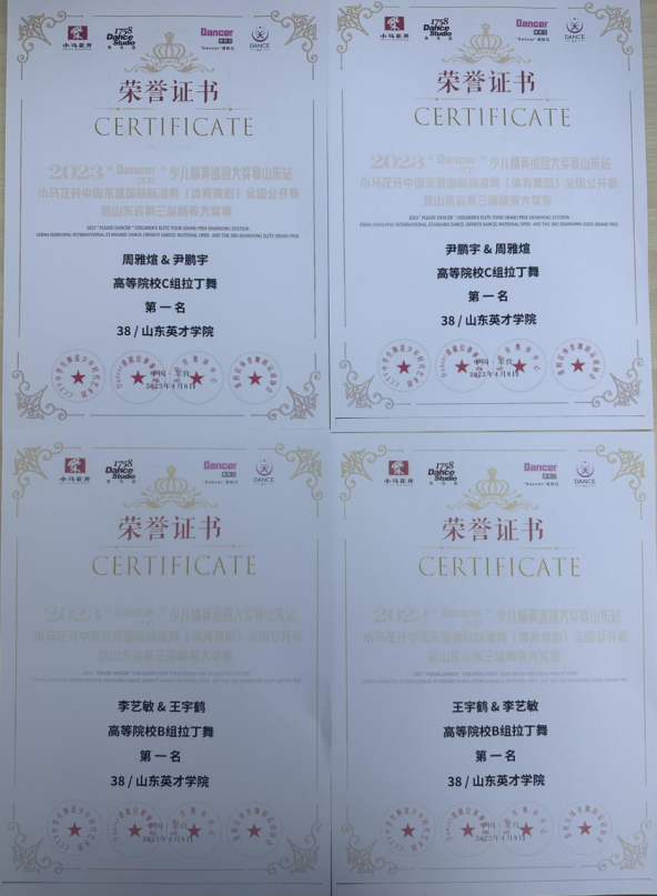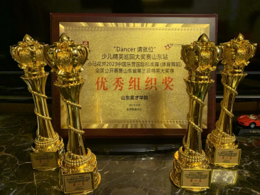 近期,音樂舞蹈學(xué)院學(xué)子在多項(xiàng)賽事中評比中捷報(bào)頻傳,屢獲佳績,4月16日,由山東省體育局在淄博主辦的山東省“體協(xié)杯”青少年體育舞蹈錦標(biāo)賽中,我院學(xué)生共獲得二十七項(xiàng)第一名、三十四項(xiàng)第二名、二十四項(xiàng)第三名的好成績,山東英才學(xué)院被授予“突出貢獻(xiàn)獎(jiǎng)”稱號(hào)。