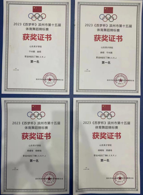 4月22,由濱州市體育總會(huì)、濱城區(qū)教育和體育局主辦的體育舞蹈錦標(biāo)賽中,我院四名學(xué)生獲得職業(yè)A組拉丁舞冠軍和職業(yè)B組拉丁舞冠軍。