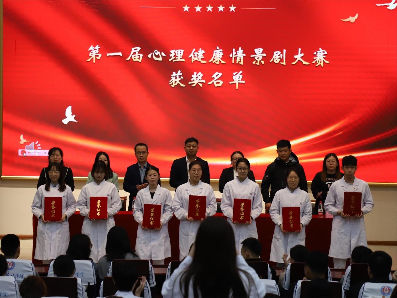 與會(huì)領(lǐng)導(dǎo)為醫(yī)學(xué)院第一屆心理健康節(jié)暨心理情景劇大賽獲獎(jiǎng)集體及代表頒發(fā)證書。