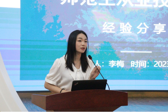 李梅同學(xué)詳細(xì)介紹了關(guān)于省賽流程中推選組、抽選組兩大類(lèi)別,并分享了自己參賽的心得體會(huì)。她在分享中還特別強(qiáng)調(diào),要堅(jiān)定信念、篤行不怠,在參照山東省編教材寫(xiě)詳案不要一味模仿,要有自己的創(chuàng)新點(diǎn),認(rèn)真對(duì)待每一次的比賽。最后,李梅同學(xué)為同學(xué)推薦學(xué)習(xí)公眾號(hào)與軟件,鼓勵(lì)同學(xué)們做好相應(yīng)知識(shí)和技能儲(chǔ)備,迎難而上,直面挑戰(zhàn)。