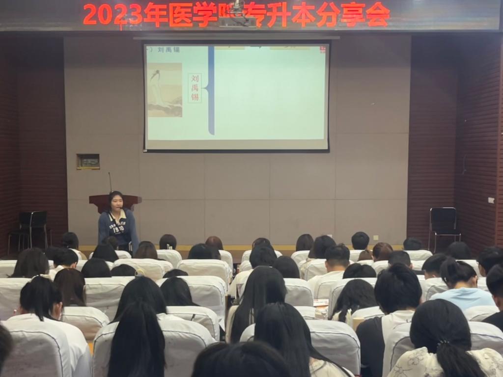為宣傳貫徹黨的二十大精神,不斷提高人才培養(yǎng)素質(zhì),鼓勵(lì)學(xué)生繼續(xù)學(xué)歷提升,促進(jìn)醫(yī)學(xué)院學(xué)子在專業(yè)領(lǐng)域繼續(xù)深造的信心。醫(yī)學(xué)院于2023年5月24日組織舉辦了“助力升本,筑夢啟航”專升本經(jīng)驗(yàn)分享交流會(huì)。此次活動(dòng)邀請(qǐng)到了王曉琳老師與同學(xué)們進(jìn)行經(jīng)驗(yàn)分享與交流。