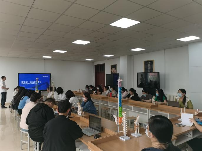 培訓(xùn)教師許騰從基于雨課堂一體化平臺進(jìn)行在線課程建設(shè)、全面收集課堂數(shù)據(jù)、混合式教學(xué)評價等方面展開授課,并與老師們就一流課程建設(shè)、在線資源使用、開展課堂活動等問題進(jìn)行了深入交流。本次培訓(xùn)在提升學(xué)院教師應(yīng)用現(xiàn)代科學(xué)技術(shù)方面起到了積極作用,促進(jìn)了教師之間的交流,激勵青年教師不斷提高教學(xué)能力和水平。