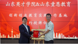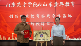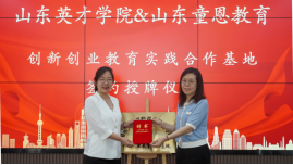 賈紅梅院長代表我院與山東童恩教育科技有限公司總經理付立濤共同揭牌,并向山東童恩教育相關領導頒發(fā)創(chuàng)新創(chuàng)業(yè)校外指導教師聘書。