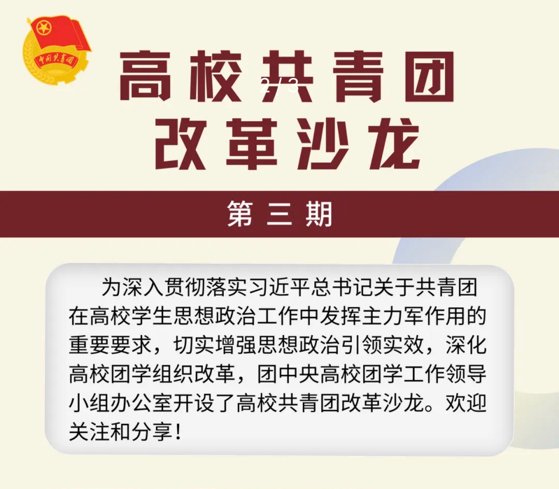 為深入貫徹落實(shí)習(xí)近平總書記關(guān)于共青團(tuán)在高校學(xué)生思想政治工作中發(fā)揮主力軍作用的重要要求,切實(shí)增強(qiáng)思想政治引領(lǐng)實(shí)效,推動(dòng)高校團(tuán)學(xué)組織改革,團(tuán)中央高校團(tuán)學(xué)工作領(lǐng)導(dǎo)小組辦公室開設(shè)了高校共青團(tuán)改革沙龍,邀請(qǐng)相關(guān)省級(jí)團(tuán)委、高校團(tuán)委分享經(jīng)驗(yàn)做法。醫(yī)學(xué)院團(tuán)委于2023年5月30日積極組織并廣泛動(dòng)員全院各級(jí)團(tuán)學(xué)干部和廣大團(tuán)員青年收聽收看“高校共青團(tuán)改革沙龍”第三期線上交流活動(dòng)直播。