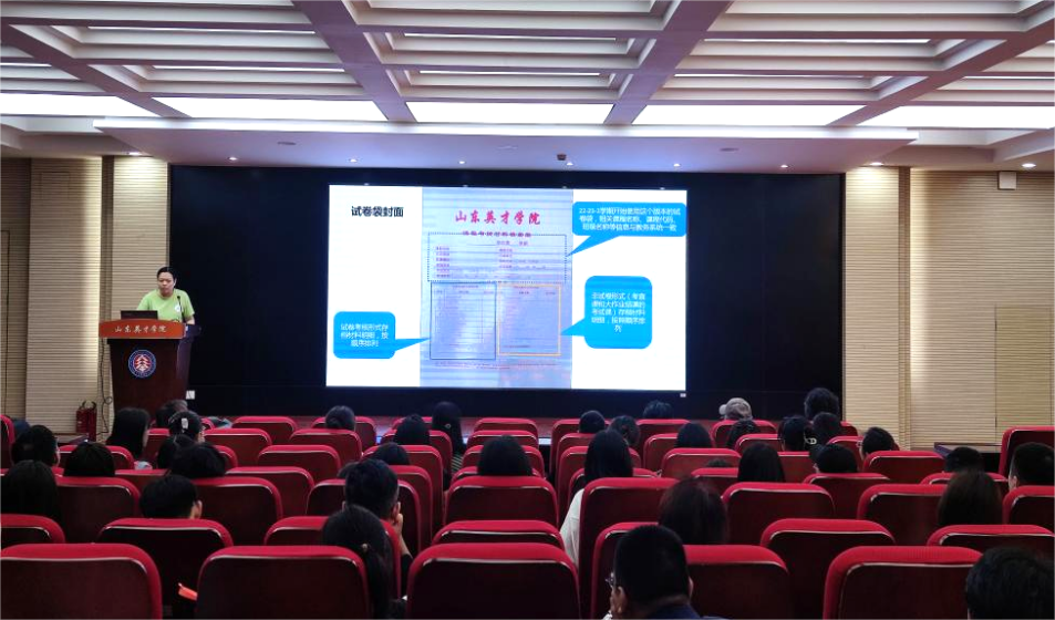 考務(wù)秘書王晶對試卷材料整理標(biāo)準(zhǔn)進(jìn)行了講解,集中學(xué)習(xí)《山東英才學(xué)院課程考核管理辦法》,并結(jié)合設(shè)計學(xué)院課程特點強調(diào)了課程考核材料整理規(guī)范要求。