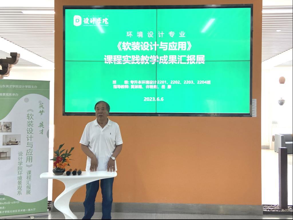 6月6日上午10點,設(shè)計學(xué)院環(huán)境設(shè)計專業(yè)《軟裝設(shè)計與應(yīng)用》課程實踐教學(xué)成果匯報展開幕式在藝術(shù)樓大廳舉行。北校區(qū)綜合辦公室主任高奎、學(xué)生處副處長杜志玉,設(shè)計學(xué)院院長周長積、副院長郝瑩,山東大學(xué)教授李克,山東師范大學(xué)教授周長亮,山東工藝美術(shù)學(xué)院教授王智、趙剛、王艷,環(huán)境暑觀系全體教師,2022級專升本環(huán)境設(shè)計班學(xué)生參加開幕式。開幕式由環(huán)境景觀系主任李敏玉主持。