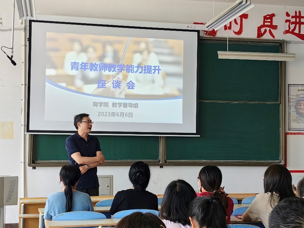 為提升青年教師教學(xué)水平,嚴(yán)格把好青年教師教學(xué)“入口關(guān)”,做好教師教學(xué)規(guī)劃,商學(xué)院于6月6日下午舉辦了青年教師教學(xué)能力提升座談會(huì),座談會(huì)由教學(xué)副院長(zhǎng)殷永生主持,商學(xué)院督導(dǎo)組組長(zhǎng)鄭本兵主講,全體新入職教師參加本次座談會(huì)。