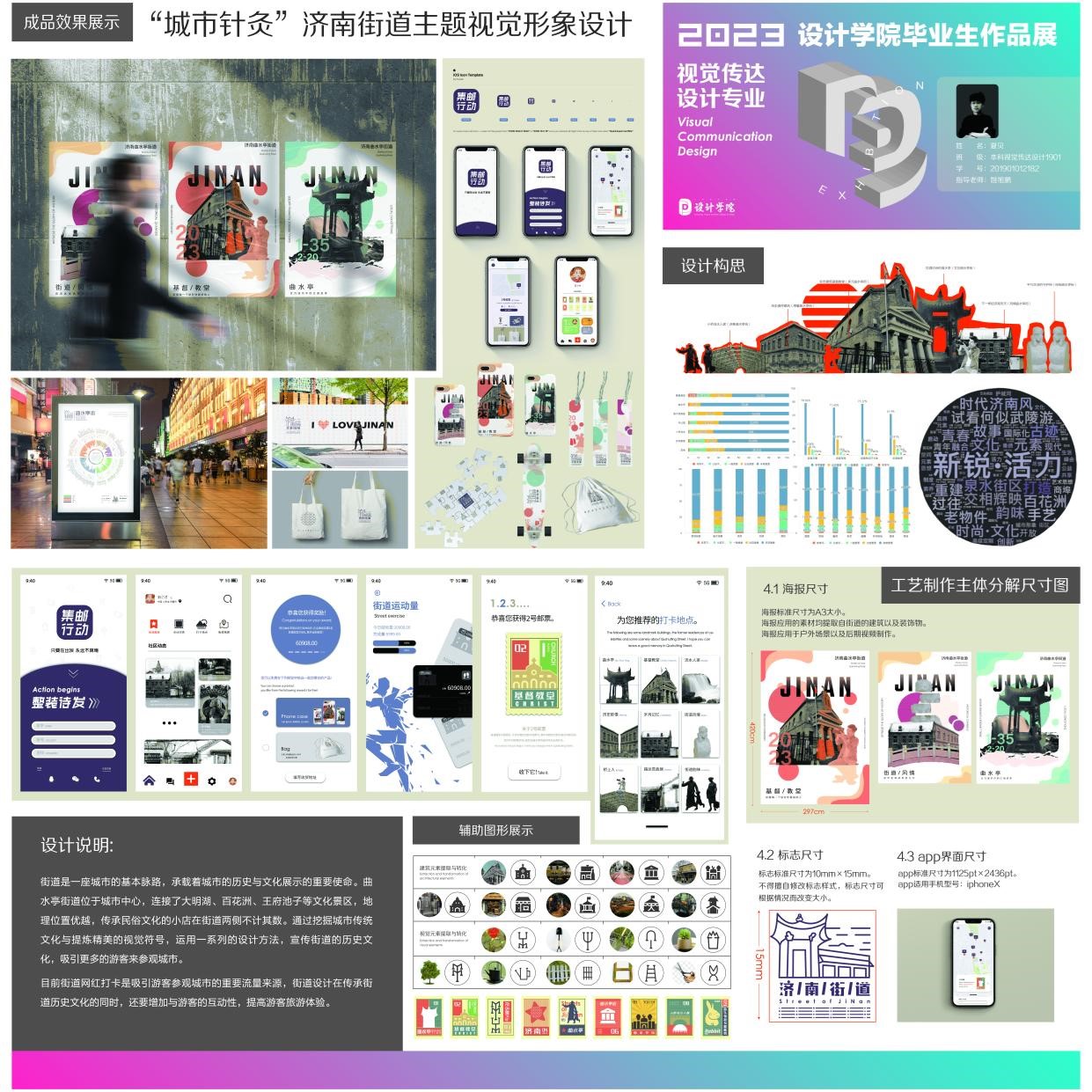 2023屆視覺傳達(dá)設(shè)計(jì)專業(yè)畢業(yè)設(shè)計(jì)作品合計(jì)186套,選題來源主要聚焦于非遺傳承、社會(huì)創(chuàng)新、城市形象、鄉(xiāng)村振興、英才文化等方面,同時(shí)與校企合作單位長城梅地亞文化產(chǎn)業(yè)集團(tuán),加強(qiáng)企業(yè)委托、項(xiàng)目合作實(shí)踐類選題的覆蓋面,提升了學(xué)生的實(shí)踐能力。堅(jiān)持開放辦學(xué),走出去,請(qǐng)進(jìn)來,鼓勵(lì)學(xué)生走向社會(huì),請(qǐng)企業(yè)導(dǎo)師進(jìn)校園,積極參與社會(huì)實(shí)踐活動(dòng),從而提升創(chuàng)新實(shí)踐應(yīng)用能力,滿足社會(huì)的人才需求。以學(xué)生為本,培養(yǎng)學(xué)生從市場經(jīng)濟(jì)開發(fā)的角度進(jìn)行創(chuàng)意設(shè)計(jì),強(qiáng)化學(xué)生的成果轉(zhuǎn)化能力,學(xué)用結(jié)合,培養(yǎng)立足地方區(qū)域經(jīng)濟(jì),黃河流域、濟(jì)南起步區(qū)的藝術(shù)設(shè)計(jì)應(yīng)用型人才。