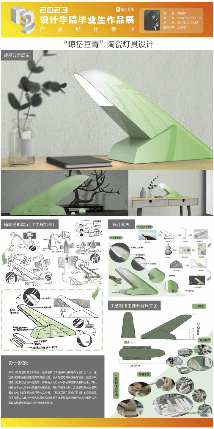 2023屆產(chǎn)品設(shè)計(jì)畢業(yè)生,主要圍繞“文創(chuàng)產(chǎn)品、家電產(chǎn)品、陶藝產(chǎn)品、家具產(chǎn)品、交通工具”等設(shè)計(jì)主題,選題涵蓋文創(chuàng)產(chǎn)品、傳統(tǒng)文化傳承與改良、陶瓷燈具設(shè)計(jì)、家具設(shè)計(jì)等,畢業(yè)設(shè)計(jì)作品充分展現(xiàn)學(xué)生四年的學(xué)習(xí)成果和教師教學(xué)成果。
