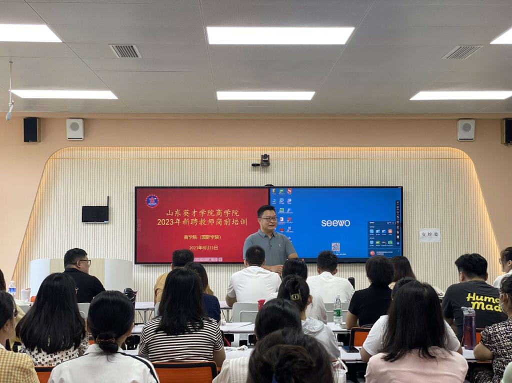 8月23日,商學(xué)院開展院級(jí)新聘教師崗前培訓(xùn)。商學(xué)院黨總支書記、院長(zhǎng)趙坤做主題發(fā)言,他表示,學(xué)院以培養(yǎng)“富有家國(guó)情懷和國(guó)際視野,通管理、重實(shí)踐、善協(xié)作、能創(chuàng)業(yè)的高素質(zhì)新商科應(yīng)用型人才”為目標(biāo)定位,不斷更新專業(yè)建設(shè)理念,理清專業(yè)建設(shè)思路,探討新商科專業(yè)建設(shè)路徑。教學(xué)副院長(zhǎng)殷永生對(duì)教師日常工作管理的規(guī)范以及如何提高教育教學(xué)質(zhì)量做了充分細(xì)致的講解。教學(xué)秘書代表丁偉老師以及實(shí)訓(xùn)中心譚建強(qiáng)主任分別對(duì)教學(xué)辦公室和實(shí)訓(xùn)中心的人員配置、運(yùn)行模式、工作流程等方面做了細(xì)致講解。