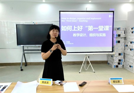 李俊峰老師講解“如何上好第一堂課”的教學(xué)設(shè)計(jì)、組織與實(shí)施,并結(jié)合示范教學(xué)案例講解,引導(dǎo)新老師結(jié)合實(shí)際情況,做好教學(xué)設(shè)計(jì),凝練教學(xué)方法,提高教學(xué)效果。并提出“一堂好課”應(yīng)具備“五有”:有氛圍、有任務(wù)、有聯(lián)盟、有生長(zhǎng)、有發(fā)展。以簡(jiǎn)練的語言使新教師們對(duì)如何進(jìn)行教學(xué)設(shè)計(jì)、如何進(jìn)行課后總結(jié)、如何形成個(gè)人教學(xué)特色等有了更清晰的教學(xué)思路。