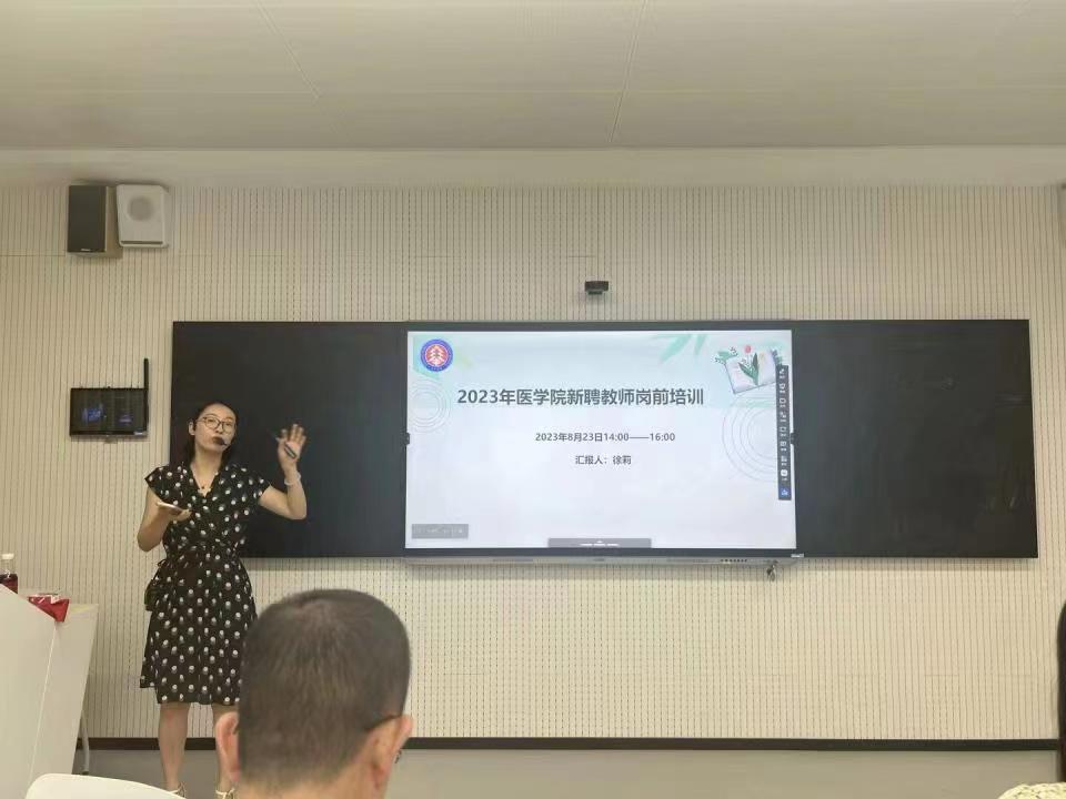 8月23日,醫(yī)學(xué)院副院長王世芳,就醫(yī)學(xué)院概況、專業(yè)建設(shè)情況、學(xué)院評建重點(diǎn)工作等內(nèi)容向全體新教師開展講解;醫(yī)學(xué)院實(shí)訓(xùn)中心王輝主任,介紹了醫(yī)學(xué)院實(shí)訓(xùn)中心全面提升改造情況以及實(shí)驗(yàn)實(shí)訓(xùn)課程教學(xué)規(guī)范;基礎(chǔ)醫(yī)學(xué)教研室主任徐莉老師,從師德師風(fēng)(含教師禮儀規(guī)范)、教學(xué)質(zhì)量規(guī)范化以及現(xiàn)代教育技術(shù)培訓(xùn)等方面為新教師展開培訓(xùn),并進(jìn)行現(xiàn)場示范,指導(dǎo)新教師針對智慧黑板、雨課堂等信息化教學(xué)設(shè)備進(jìn)行實(shí)踐。
