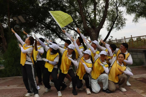 拓展活動以“開營破冰”項目拉開帷幕。打破界限,將參加活動的教師分成4組,每組選出一名隊長、一名秘書和一名旗手,帶領(lǐng)隊員們共同完成拓展活動。通過聽指令報數(shù),快速分組的形式,隊員們施展各自特長,確定團(tuán)隊名稱、口號、繪制隊旗,完成隊伍造型展示。此項目使新教師們提升了團(tuán)隊成員的合作能力,使新教師們相互之間主動接觸、交流,達(dá)到了快速熟悉、增進(jìn)感情的目的。