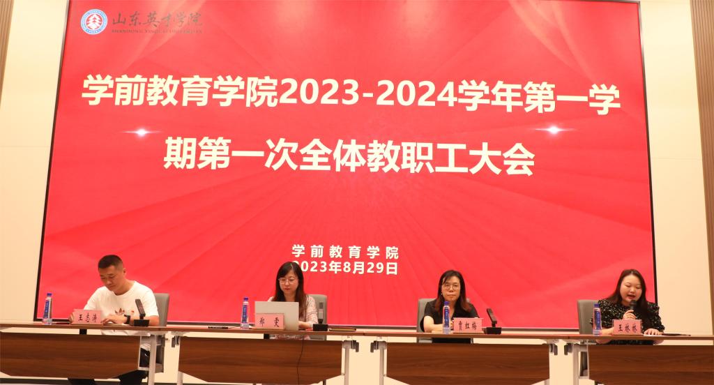 未覺(jué)夏暑盡,時(shí)序已新秋。新學(xué)期,展新篇;新征程,開(kāi)新局。8月29日下午,學(xué)前教育學(xué)院在學(xué)術(shù)報(bào)告廳舉行2023-2024學(xué)年第一學(xué)期第一次全體教職工大會(huì),學(xué)前教育學(xué)院黨總支書(shū)記、院長(zhǎng)鄭雯,行政院長(zhǎng)王志濤,教學(xué)院長(zhǎng)賈紅梅及學(xué)院全體教職工參加會(huì)議,會(huì)議由團(tuán)委書(shū)記王林林主持。