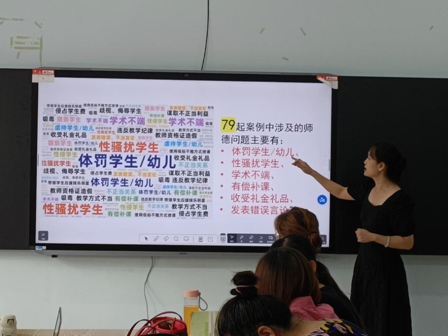9月1日,學(xué)前教育學(xué)院在兒童小劇場召開師德師風(fēng)專題學(xué)習(xí)會(huì)議,教工支部書記張強(qiáng)深入分析教育部公開曝光的違反教師職業(yè)行為十項(xiàng)準(zhǔn)則的典型案例,指出高校教師師德師風(fēng)的常見風(fēng)險(xiǎn)點(diǎn),并結(jié)合《新時(shí)代高校教師職業(yè)行為十項(xiàng)行為準(zhǔn)則》提出風(fēng)險(xiǎn)點(diǎn)防控建議。