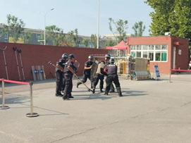 隨著演練總指揮的一聲號令,北校區(qū)綜合辦公室會同濟南市公安局反恐支隊、起步區(qū)公安分局和崔寨派出所主辦的“山東英才學院北校區(qū)2023年度反恐防暴應急處突演練”在北校區(qū)南門廣場拉開帷幕。安保人員維穩(wěn)應急處置模擬場景,演練逼真、緊貼實戰(zhàn),處置果斷、精準高效,充分展現(xiàn)維穩(wěn)處置的震懾力。