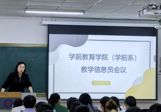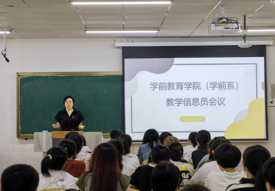 為提升學(xué)前教育學(xué)院教學(xué)質(zhì)量,保障教育教學(xué)工作順利開展,發(fā)揮學(xué)生參與教學(xué)管理和教學(xué)活動(dòng)的主體地位,學(xué)前教育學(xué)院學(xué)前系于2023年9月19日中午在學(xué)前樓4003教室開展教學(xué)信息員會(huì)議,出席此次會(huì)議有教學(xué)院長(zhǎng)賈紅梅、教學(xué)秘書張金玲、實(shí)驗(yàn)中心教研室副主任王歡、各教研室主任、教學(xué)督導(dǎo)及各年級(jí)長(zhǎng)。