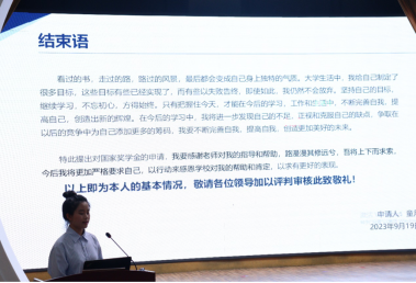 會(huì)議最后,王書(shū)記針對(duì)此次答辯做出點(diǎn)評(píng)總結(jié),并對(duì)參辯同學(xué)的表現(xiàn)以及成績(jī)給予了充分肯定和鼓勵(lì),他強(qiáng)調(diào):國(guó)家獎(jiǎng)學(xué)金及省政府獎(jiǎng)學(xué)金的評(píng)選不僅是對(duì)同學(xué)們的一種表彰,更是一種激勵(lì),希望同學(xué)們堅(jiān)定理想信念,繼續(xù)踔厲奮發(fā)、篤行不怠,發(fā)揮青年榜樣力量,激勵(lì)更多學(xué)子自強(qiáng)不息,積極向上,營(yíng)造良好的校園文化氛圍。