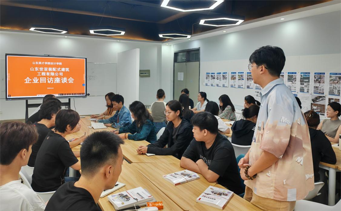 2023年9月12日上午,山東英才學(xué)院設(shè)計學(xué)院在藝術(shù)樓206舉辦了“校企合作企業(yè)回訪”師生座談會活動,本次活動邀請了設(shè)計學(xué)院環(huán)境設(shè)計專業(yè)校企合作企業(yè)—山東世亞裝配式建筑工程有限公司設(shè)計總監(jiān)鄭瀚墨參加。設(shè)計學(xué)院院長周長積、副院長郝瑩、環(huán)境設(shè)計專業(yè)教師代表以及學(xué)生代表參加座談。