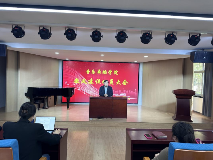 為進(jìn)一步貫徹落實(shí)《山東英才學(xué)院關(guān)于全面加強(qiáng)和改進(jìn)教風(fēng)學(xué)風(fēng)建設(shè)的意見(jiàn)》文件精神,深入落實(shí)立德樹(shù)人根本任務(wù),全面提高學(xué)校教育教學(xué)水平質(zhì)量,10月16日中午,音樂(lè)舞蹈學(xué)院全體教師于藝體樓多功能廳召開(kāi)教風(fēng)建設(shè)動(dòng)員大會(huì)。學(xué)院院長(zhǎng)吳可畏出席會(huì)議并講話,執(zhí)行院長(zhǎng)鞏麗、各教研室主任和全體教師參加會(huì)議。