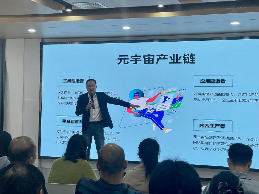 為拓展教師科研視野,提升新一代信息技術應用能力,10月24日,工學院在協同創(chuàng)新中心216召開“工業(yè)元宇宙賦能下一代生產力”的學術交流會。會議邀請了鳴啟數字科技(山東)有限公司研發(fā)中心張孝衢總經理作為主講,工學院院長田恒義、副院長蔣麗麗及全體教師參加了本次會議。
