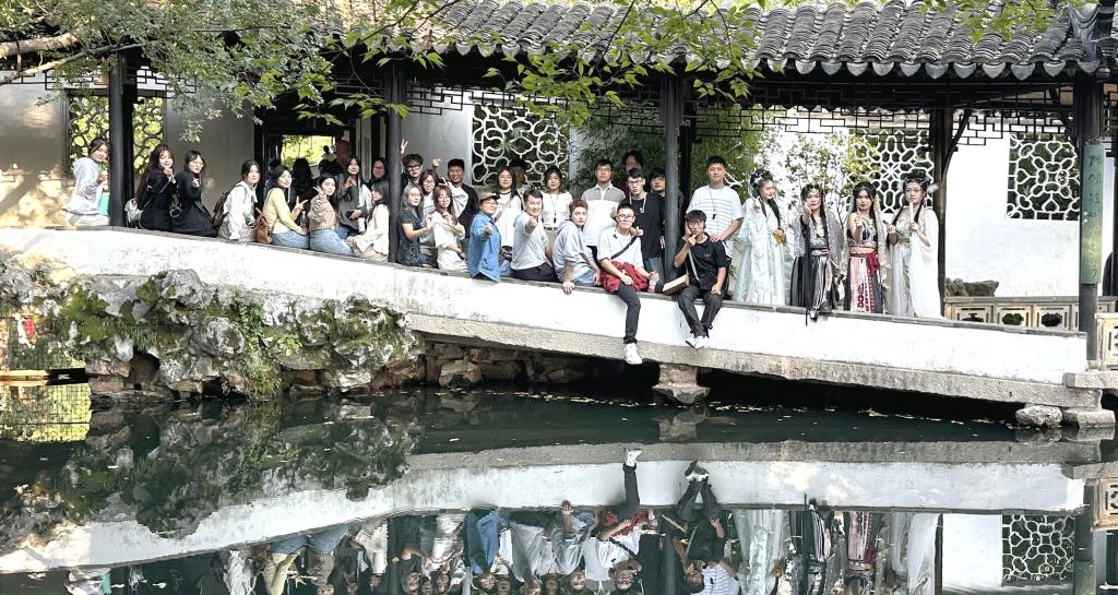 第三站來到蘇州,這座歷史文化名城,自古以來便以其獨特的江南水鄉(xiāng)風(fēng)貌和豐富的文化氣息聞名于世。在這里,周莊古鎮(zhèn)以其“天下第一水鄉(xiāng)”的美譽,這里的一磚一瓦、一河一橋都流淌著古老的故事,讓學(xué)生們深感歷史的厚重。