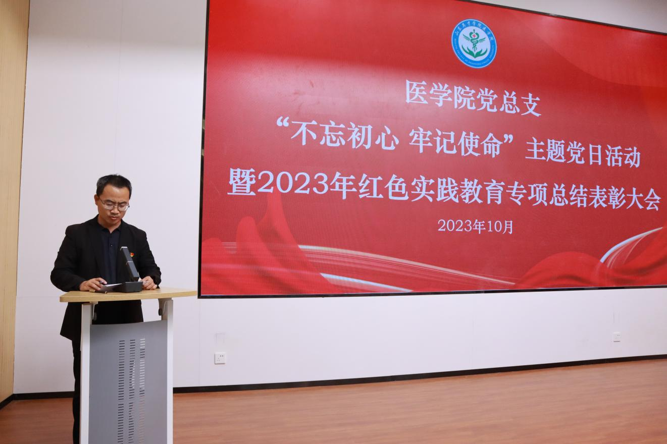 為推動學(xué)習(xí)貫徹習(xí)近平新時代中國特色社會主義思想主題教育走深走實(shí),引導(dǎo)學(xué)生傳承弘揚(yáng)黨的光榮傳統(tǒng)和優(yōu)良作風(fēng),醫(yī)學(xué)院黨總支于10月31日在醫(yī)學(xué)院107召開“不忘初心 牢記使命”主題黨日活動暨2023年紅色實(shí)踐教育專項(xiàng)表彰會,山東英才學(xué)院黨委副書記孫玉香、醫(yī)學(xué)院黨總支書記盧傳華、教師支部書記王世芳、學(xué)生支部書記武玉興、醫(yī)學(xué)院全體黨員及2023級部分學(xué)生參加,會議由武玉興同志主持。