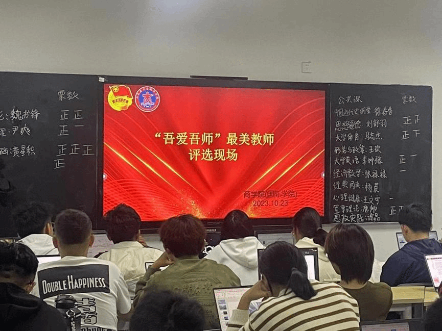 為了積極促進(jìn)教育教學(xué)活動(dòng),拉進(jìn)學(xué)生和教師群體距離,商學(xué)院(國際學(xué)院)于10月23日舉辦了“吾愛吾師”最美教師評(píng)選活動(dòng)。各班級(jí)陸續(xù)進(jìn)行最美教師評(píng)選投票,各班學(xué)習(xí)委員于10月23日在會(huì)議上匯報(bào)投票結(jié)果。最終評(píng)選出三位專業(yè)課最美老師和一位公共課最美教師。