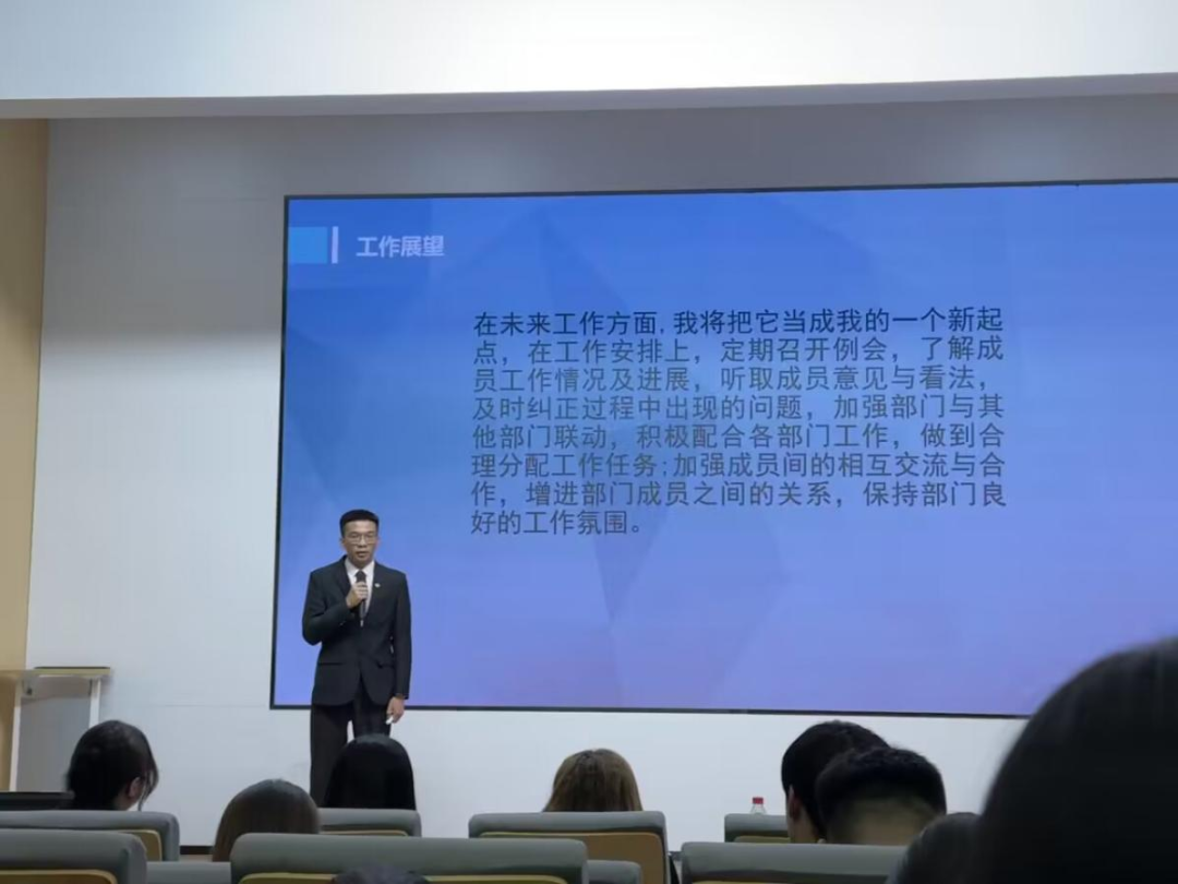 候選人依次上臺(tái)進(jìn)行5分鐘競聘演講,內(nèi)容包括自我介紹、工作經(jīng)歷、管理模式、工作展望等??偨Y(jié)過去一年的工作成績,展望競選后的工作計(jì)劃。