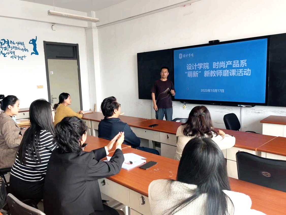 為了進(jìn)一步提升新教師教學(xué)能力,夯實(shí)教學(xué)基本功,以及培養(yǎng)優(yōu)秀青年教師,根據(jù)《山東英才學(xué)院2023年新教師萌新磨課活動(dòng)實(shí)施方案》,設(shè)計(jì)學(xué)院時(shí)尚產(chǎn)品教研室自2023年10月17日起開(kāi)展了新教師“萌新”磨課活動(dòng),由司海波主任主持,組織帶領(lǐng)教研室全體青年教師參加活動(dòng)。